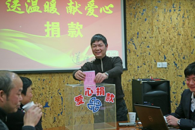 予人以愛,人予我愛。在發(fā)善心環(huán)節(jié),隨著一段溫暖的音樂響起,主持人宣讀了“送溫暖獻愛心”捐款倡議書,倡導(dǎo)大家奉獻自己的一片愛心?;顒拥玫搅舜蠹业臒崃翼憫?yīng),紛紛上臺捐款,大家表示會繼續(xù)支持公司志愿服務(wù)事業(yè)的發(fā)展,將愛心傳遞的更加遙遠,讓社會變得更加友愛、和諧。